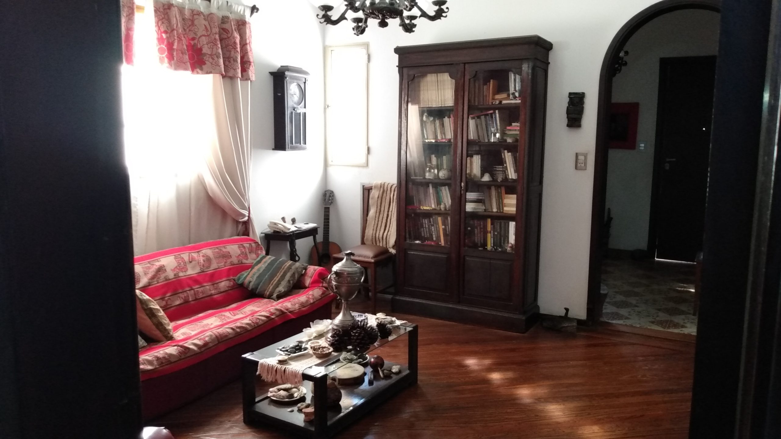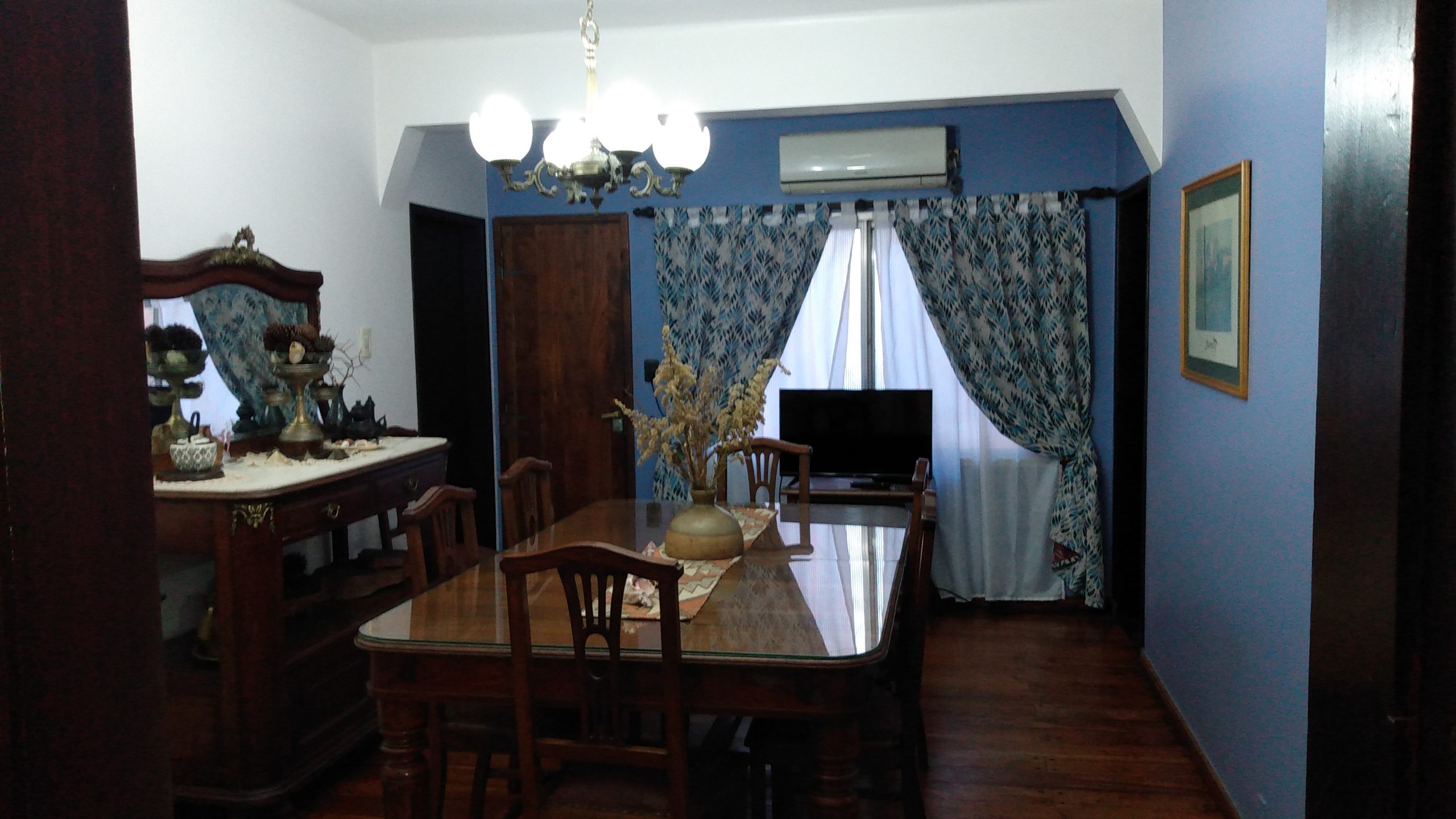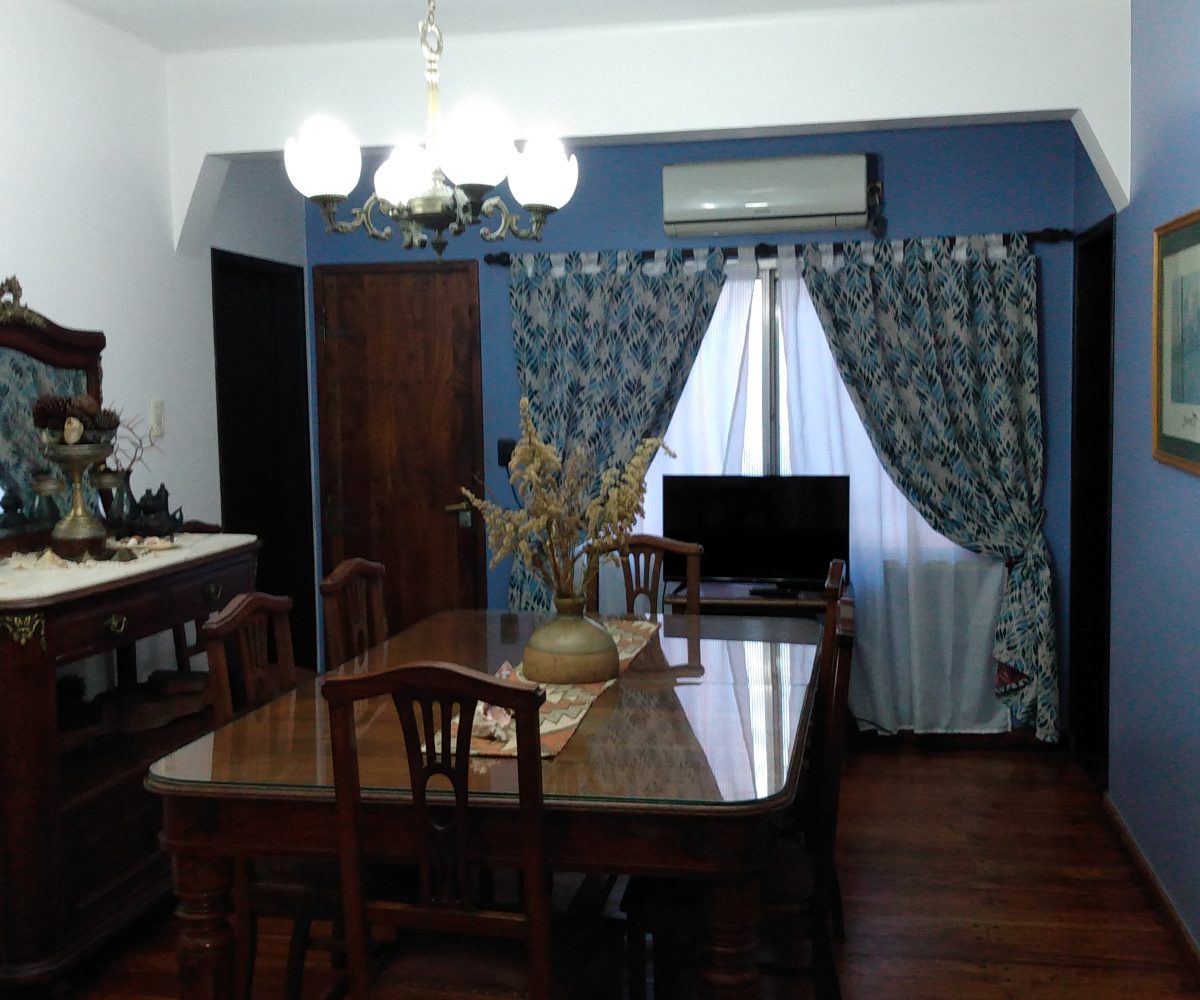 Amplio living comedor con arcada y ventanal al patio. Pisos en pinotea.