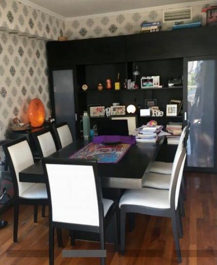Cocina comedor diario reciclada a nuevo con muebles bajo mesada y alacenas, doble circulación en la misma , aberturas en madera cedro.