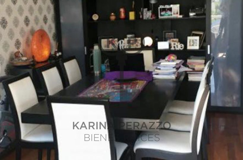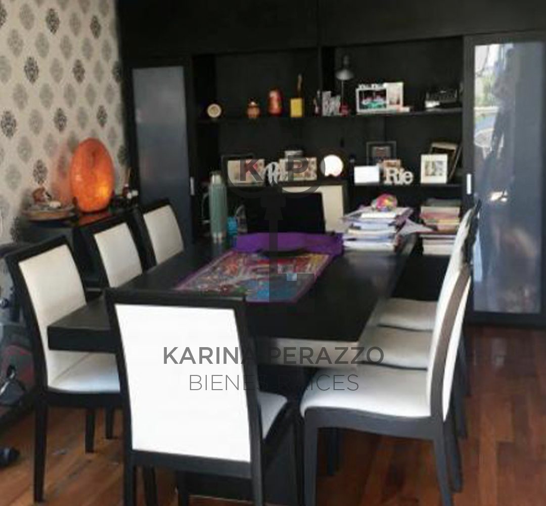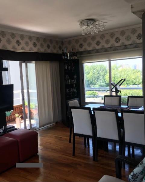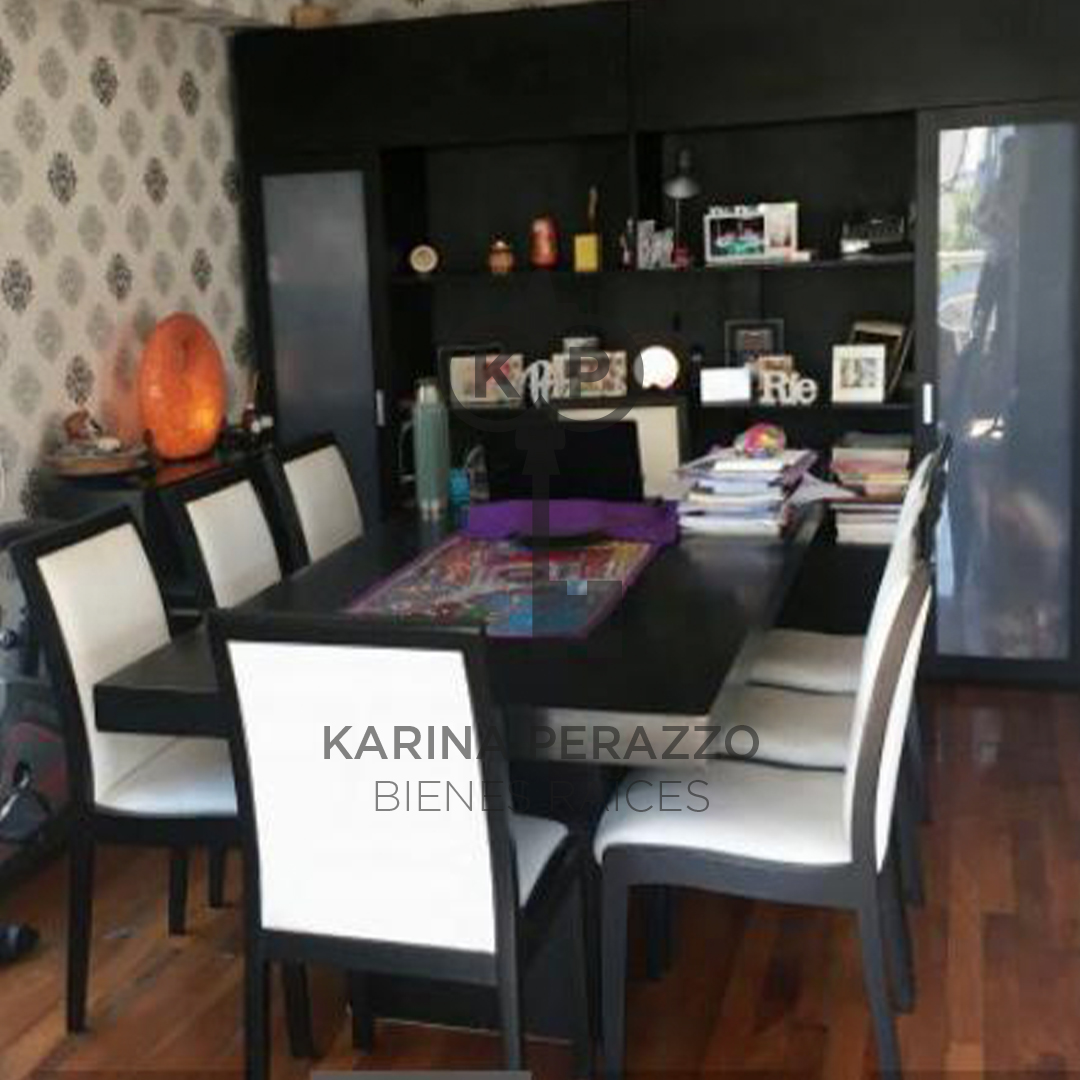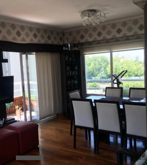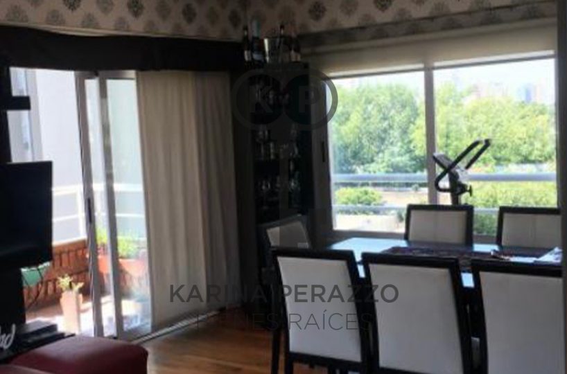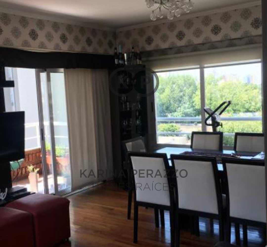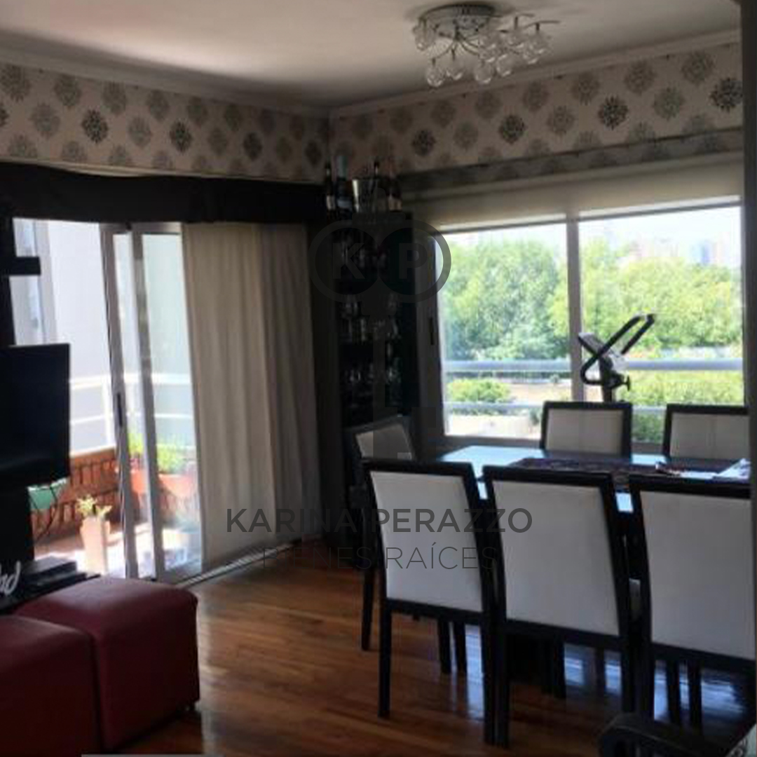 Importante living comedor con pisos de madera. Salida a balcón corrido con parrilla.
