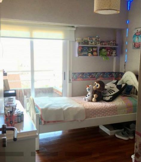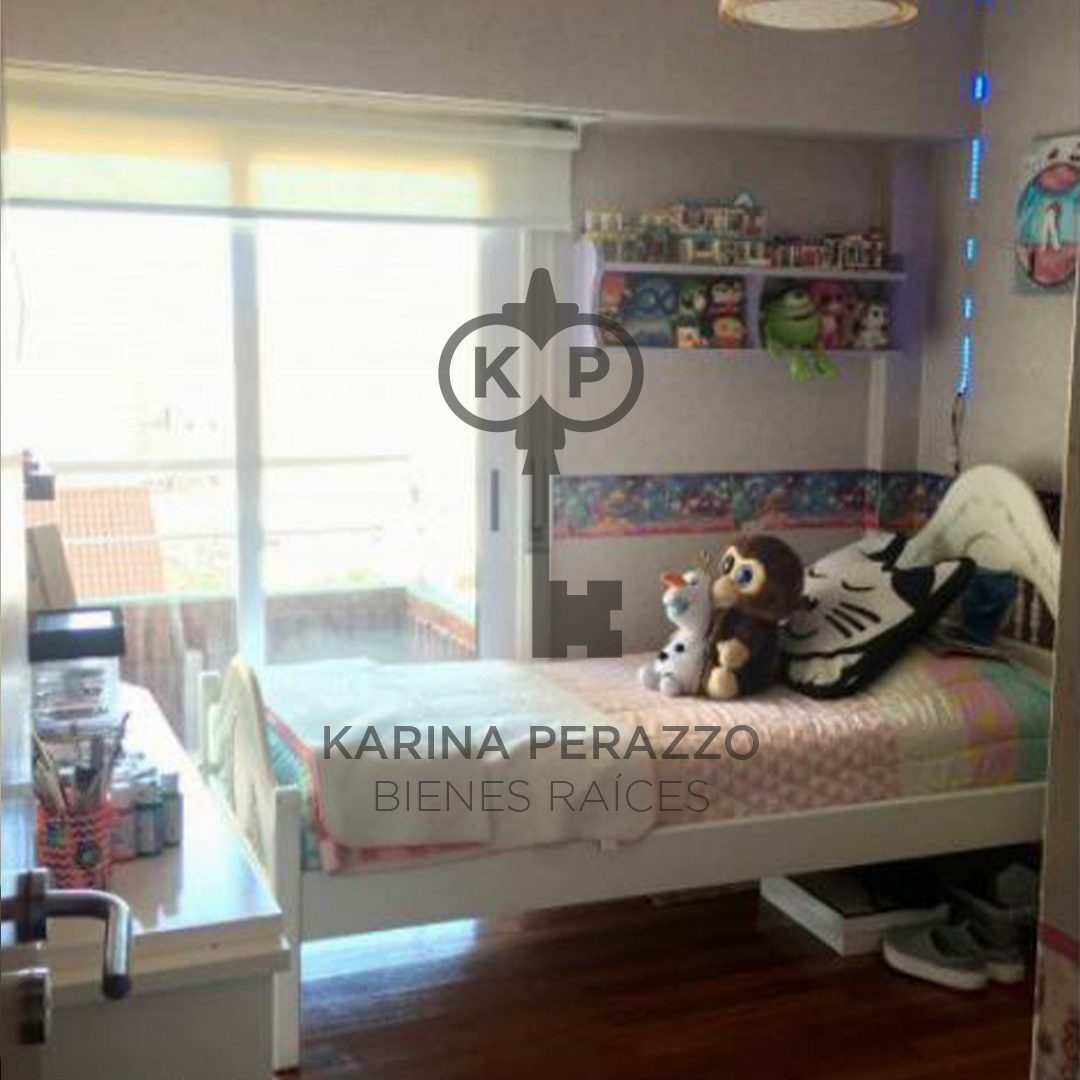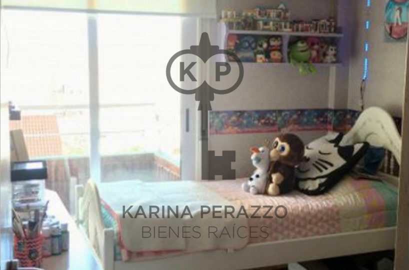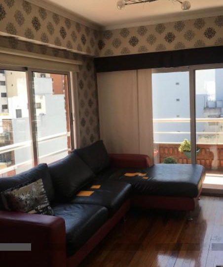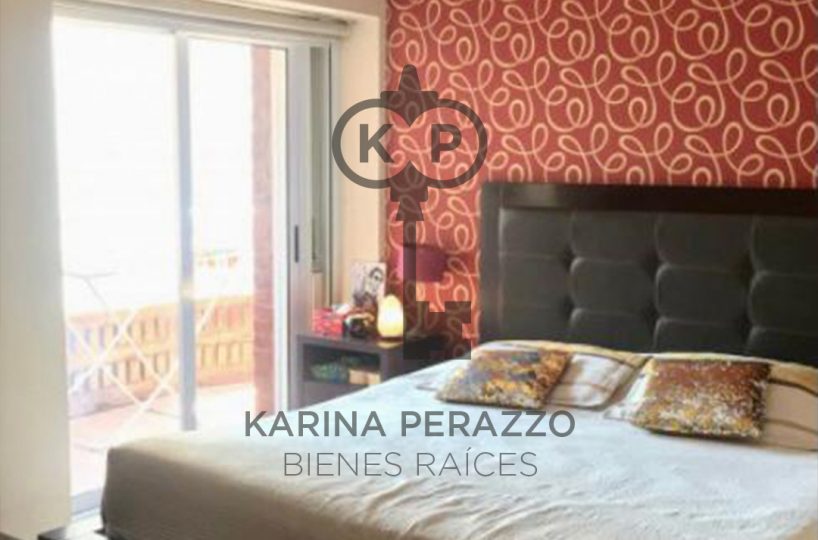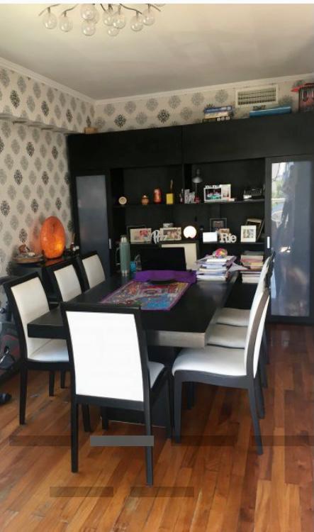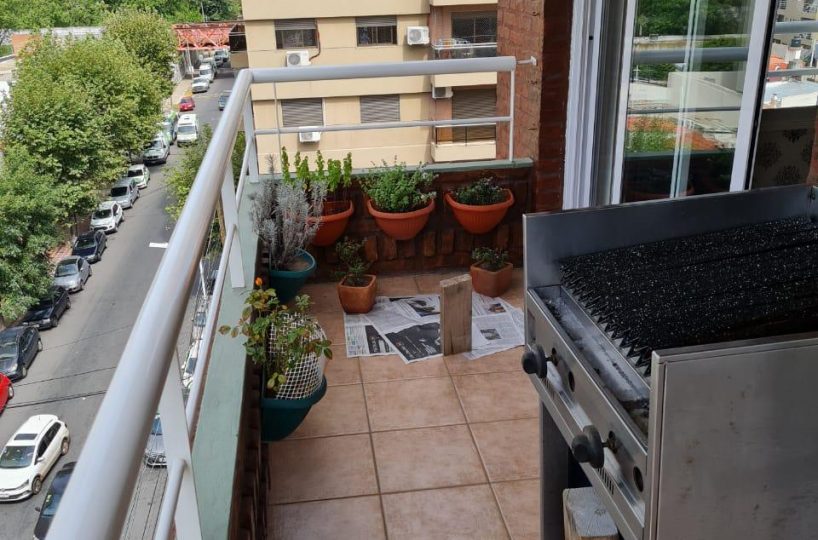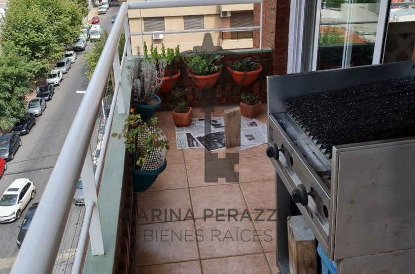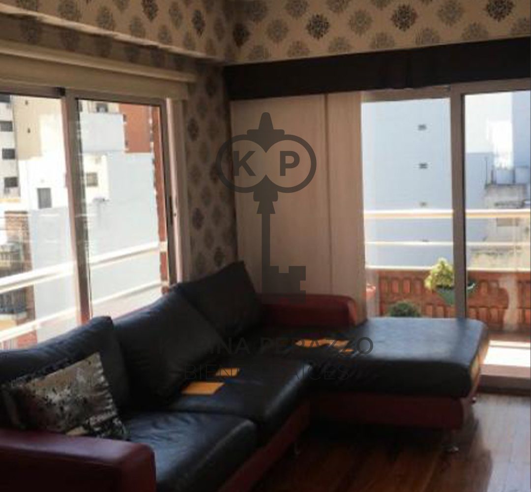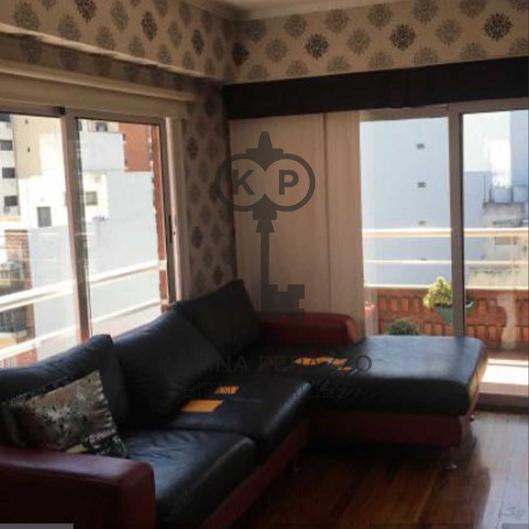 Importante living comedor con pisos de madera. Salida a balcón corrido con parrilla.