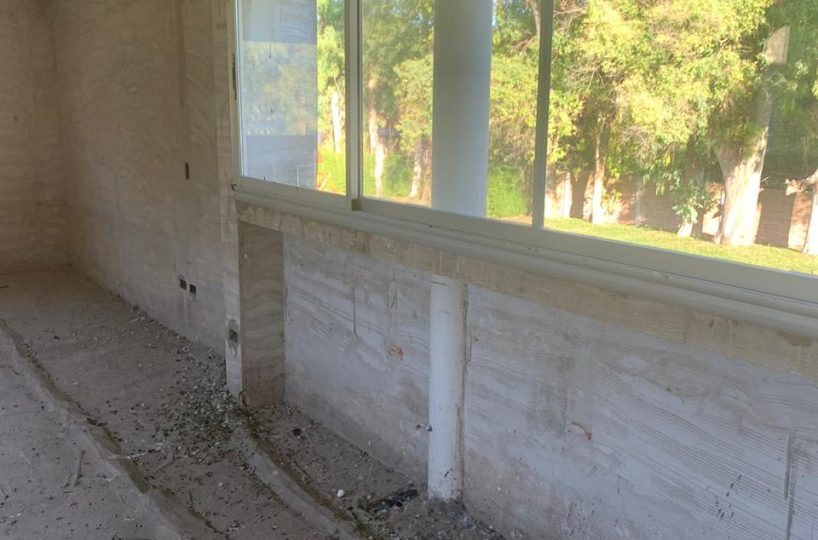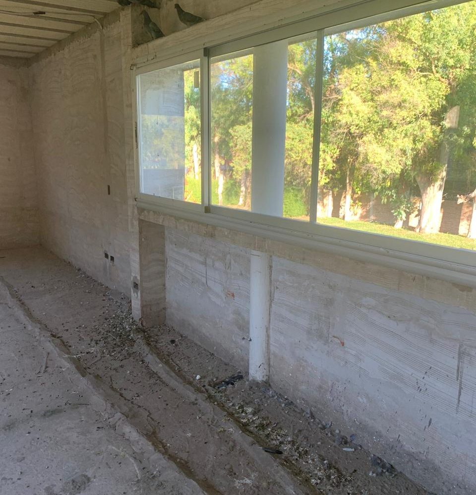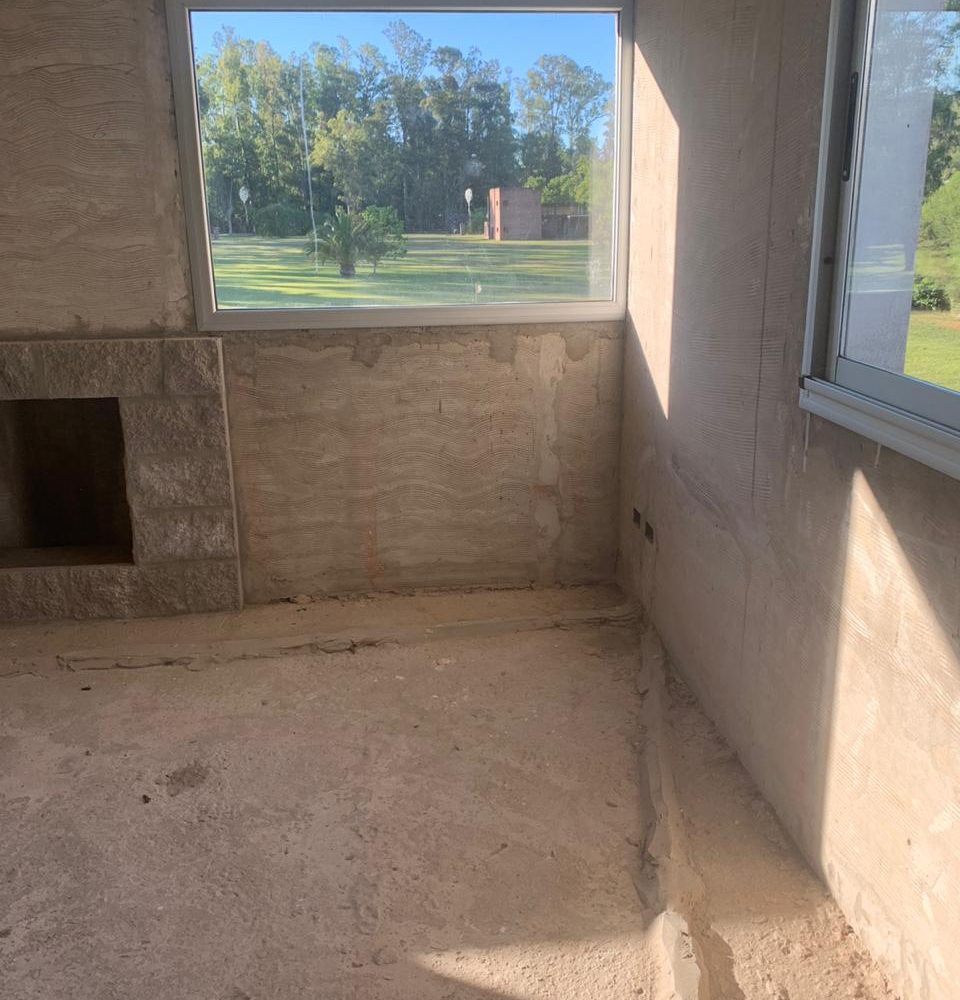 Construcción tradicional, cubierta de chapa, cielorraso madera a la vista, carpintería exterior prepintada, carpintería interior con marco metálico y hoja de madera, distribución de agua por termofusión.