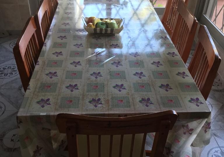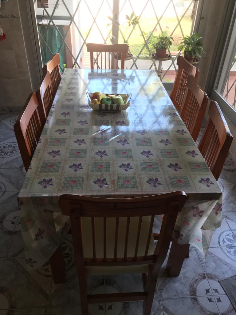 Cocina comedor muy luminosa con amueblamiento bajo y sobremesada.